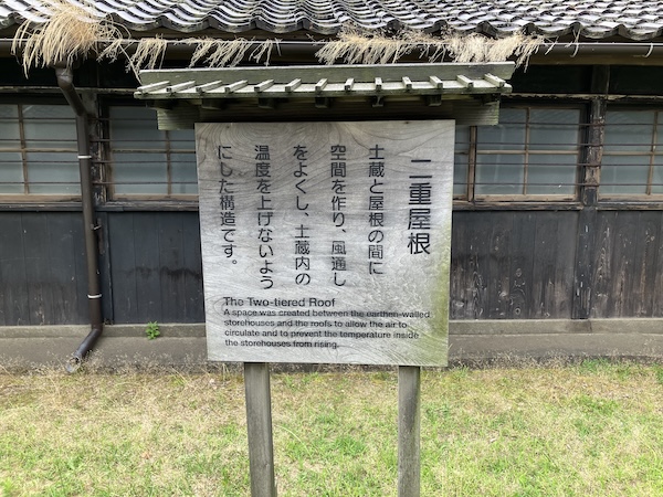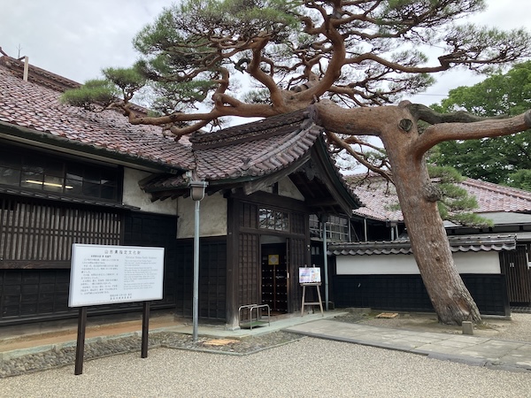 本邸の前には駐輪スペースがなく、自転車をどこに置こうかキョロキョロ。今しがた通ってきた脇をみると、ちょうど良さそうなスペースがあるではないか。しかも「SAKATA」の幟旗も立っていて観光名所と主張しているから断られるはずはなかろう。入り口から内に向けて「自転車停めてもいいですか?」と声をかけると、「いいですよ〜。ただ、お客さんが来た道は通行禁止です」とクギを刺された😅 グググ〜、知らんかったの。どおりで妙な段差があったんだ😅