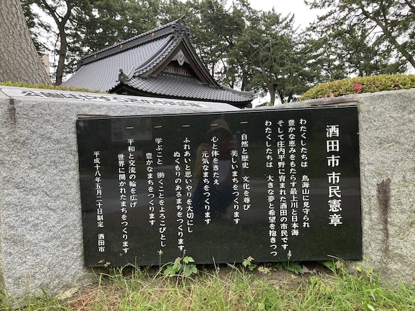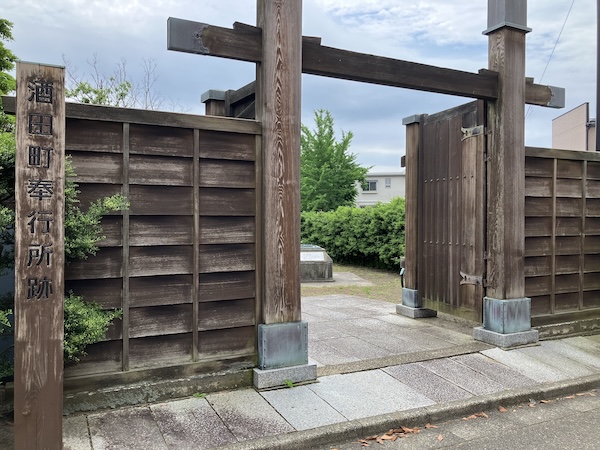 次に、本間家旧邸を目指して北上しようと川を背に進みはじめた細い通りに、何やら惹かれる門を見つけた。酒田町奉行所跡だって♪