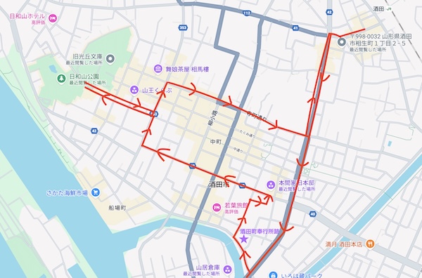 本間家旧本邸を出たところで10時半。まだ1時間ほど残ってる。